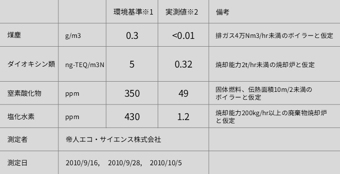 ※2 燃焼が安定した後、ダイオキシン類は約5時間の平均値、その他は約1時間の平均値