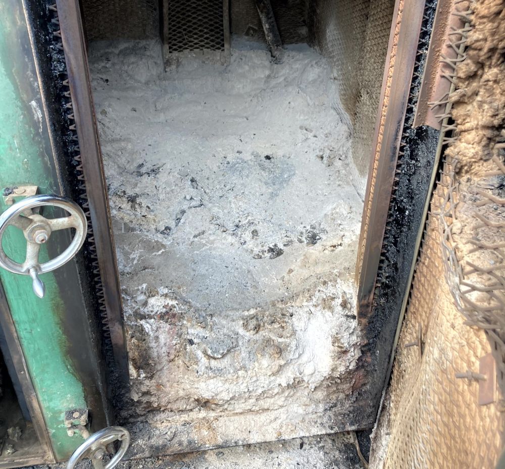 エコボイラは燃焼空気を最適に制御しています。これにより残渣は少なく(殆どは木灰)、木灰の清掃は1シーズン(5~6ヶ月程度)に1回で済み、清掃の手間を最小限に抑えられます。
