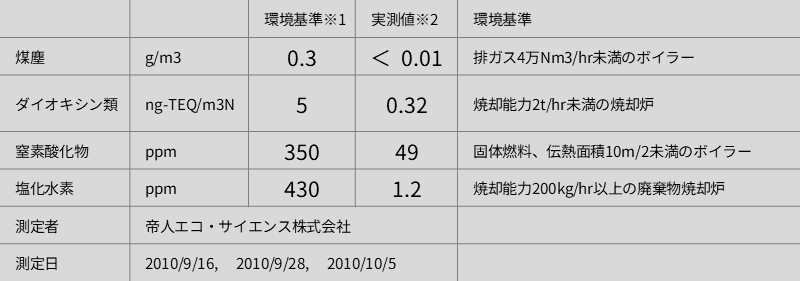 ※2 燃焼が安定した後、ダイオキシン類は約5時間の平均値、その他は約1時間の平均値